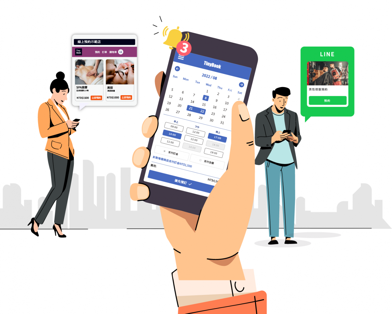 開店方案精選 立即免費體驗 優惠 一頁式預約 原價 NT$19,800 NT$ 17,760 年繳 ( 現省2,040 ) Line預約/管理APP+預約網站 免費體驗 特價 品牌預約 原價 NT$28,800 NT$ 26,400 年繳 ( 現省2,400 ) 群發EDM、CRM 會員經營 免費體驗 特價 社群預約 原價 NT$44,160 NT$ 38,400 年繳 ( 現省5,760 ) 會員分級、點數、部落格 免費體驗